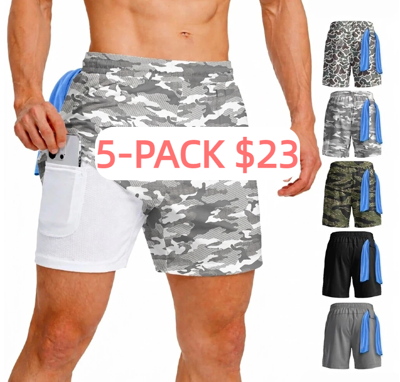 Men’s 7" Swim Trunks 2-in-1 with Compression Liner Pockets, Drawstring, Stretch Quick-Dry – Gym