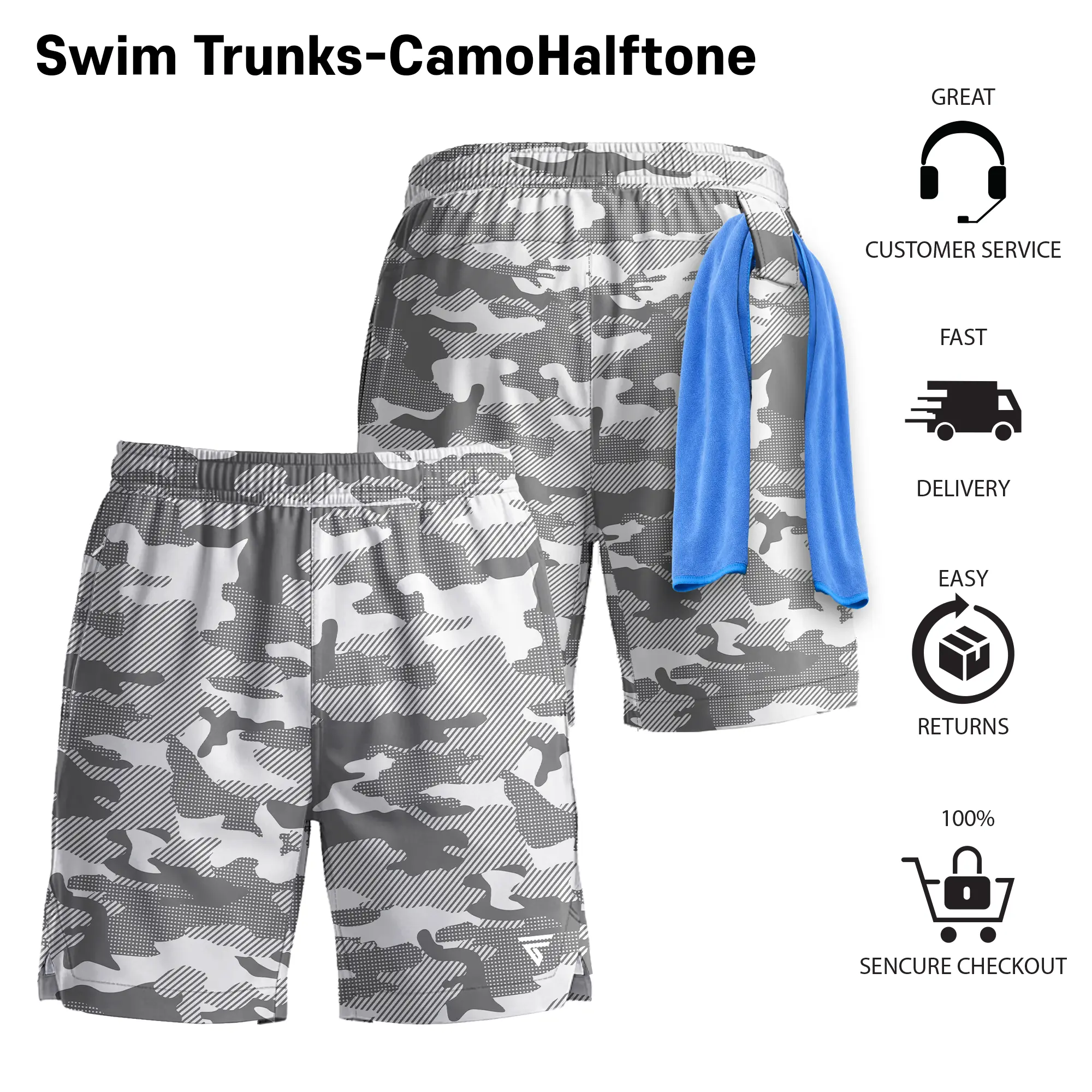 【 Men's bathing suit with pockets,Back towel loop】 The mens swimwear feature two side pockets for secure storage and a side velcro pocket for quick access, men swimming trunks ensures your essentials are safely tucked away while remaining easily reachable, Convenient towel holder during workouts.Mens printed swimsuits with a hidden lined pocket, convenient phone essentials, give fully sense of security and keep hands free.