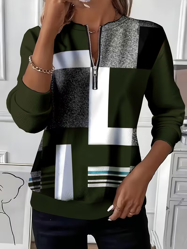 Women's Abstract Print Casual Zipper Long Sleeve Sweatshirt